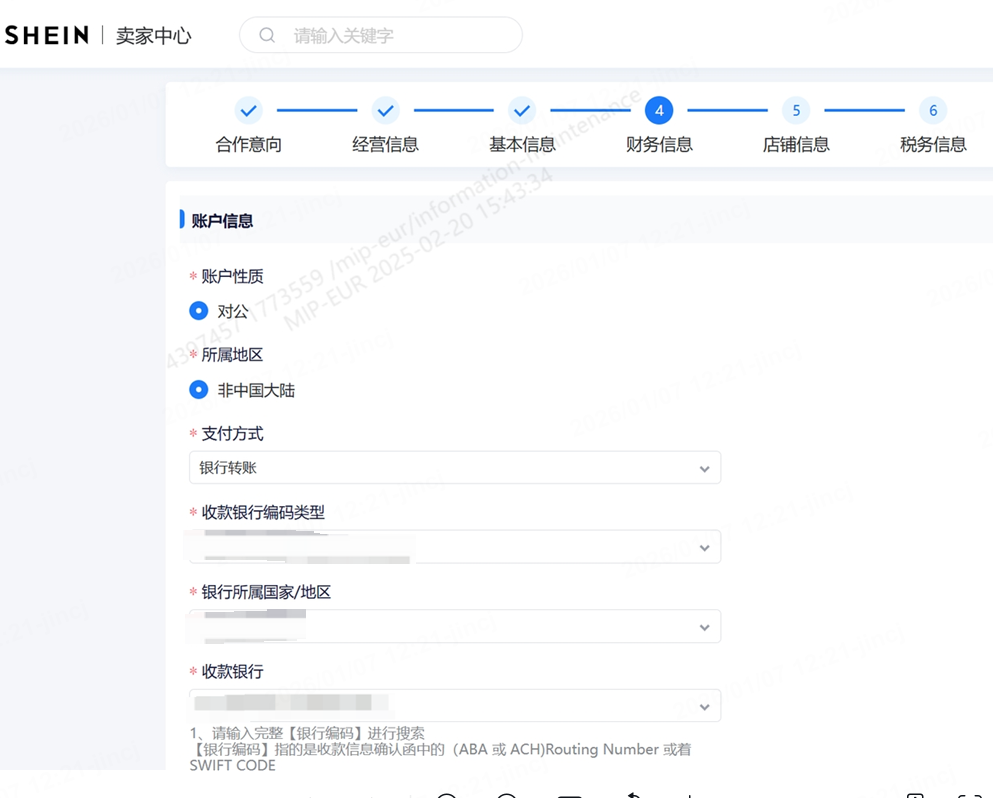 三、“SHEIN”平台收款账户绑定流程