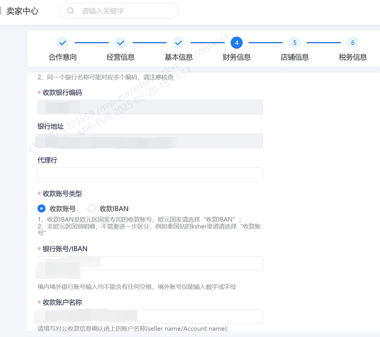 填写收款账户信息