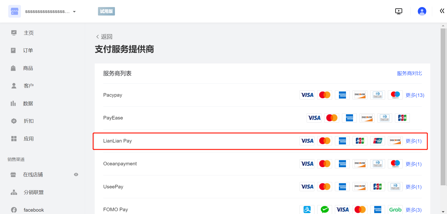 21、登录Allvalue后台,点击 设置,选择 收款,点击 其他结账方式,找到 LianLian Pay,点击进入配置页面。