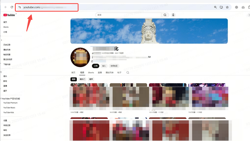Youtube账号主页示例图如下: