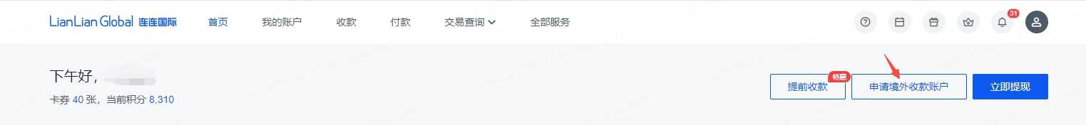 1. 在LianLian Global后台点击【申请境外收款账户】