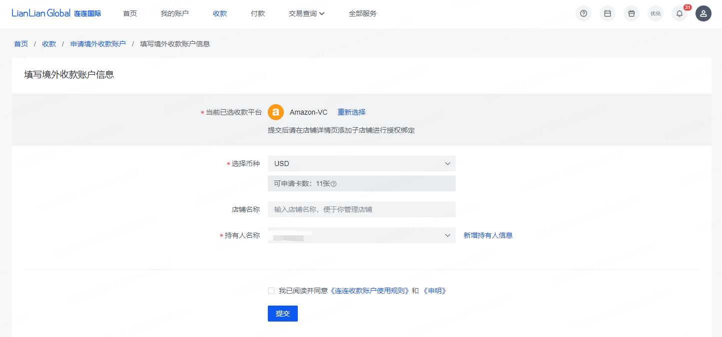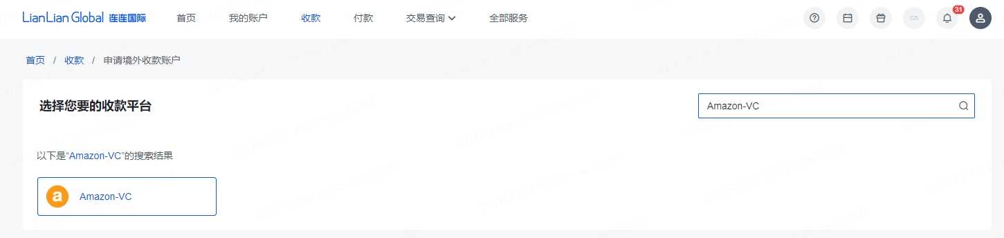 如您已经在LianLian Global申请了Amazon-VC收款账户