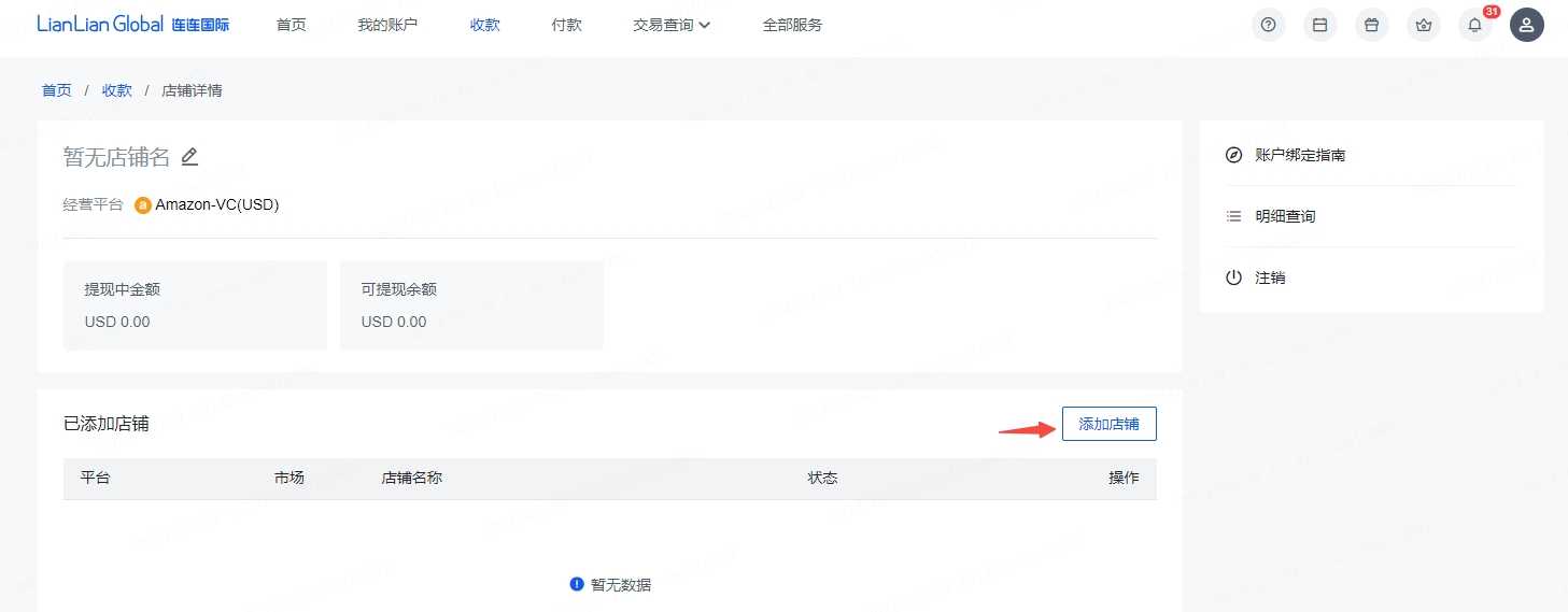 第一步:在LianLian Global后台点击【收款】-【店铺详情】-【添加店铺】
