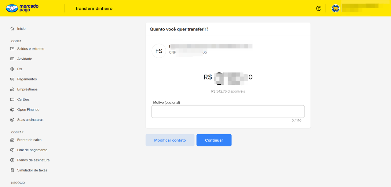 7、继续点击transferir,进入转账验证页面