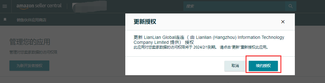 方法(1):可以通过连连用户站跳转到亚马逊后台进行更新授权
