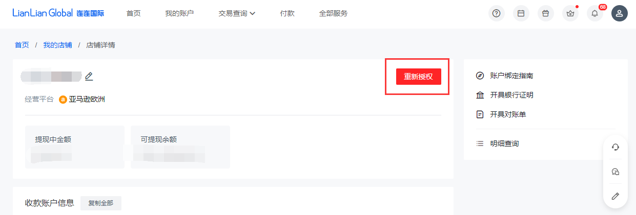 情况2:连连后台显示授权已失效,需要重新授权店铺: