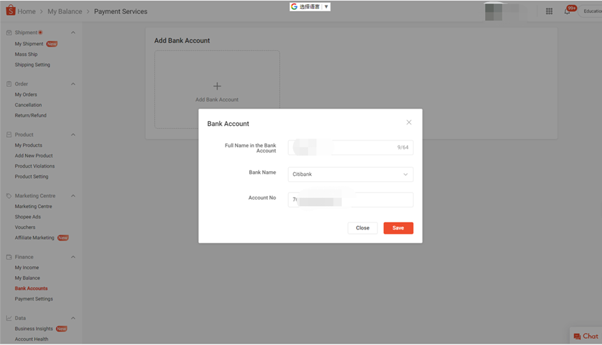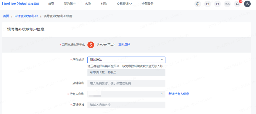 五、Shopee新加坡本土店铺后台绑定连连收款账户