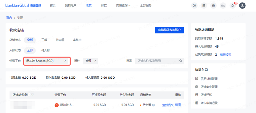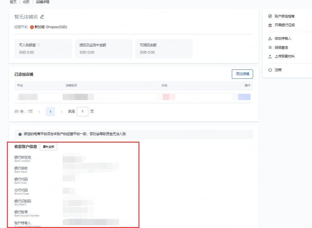注:Shopee本土店建议在申请收款账户时就完成绑定店铺,否则影响资金入账