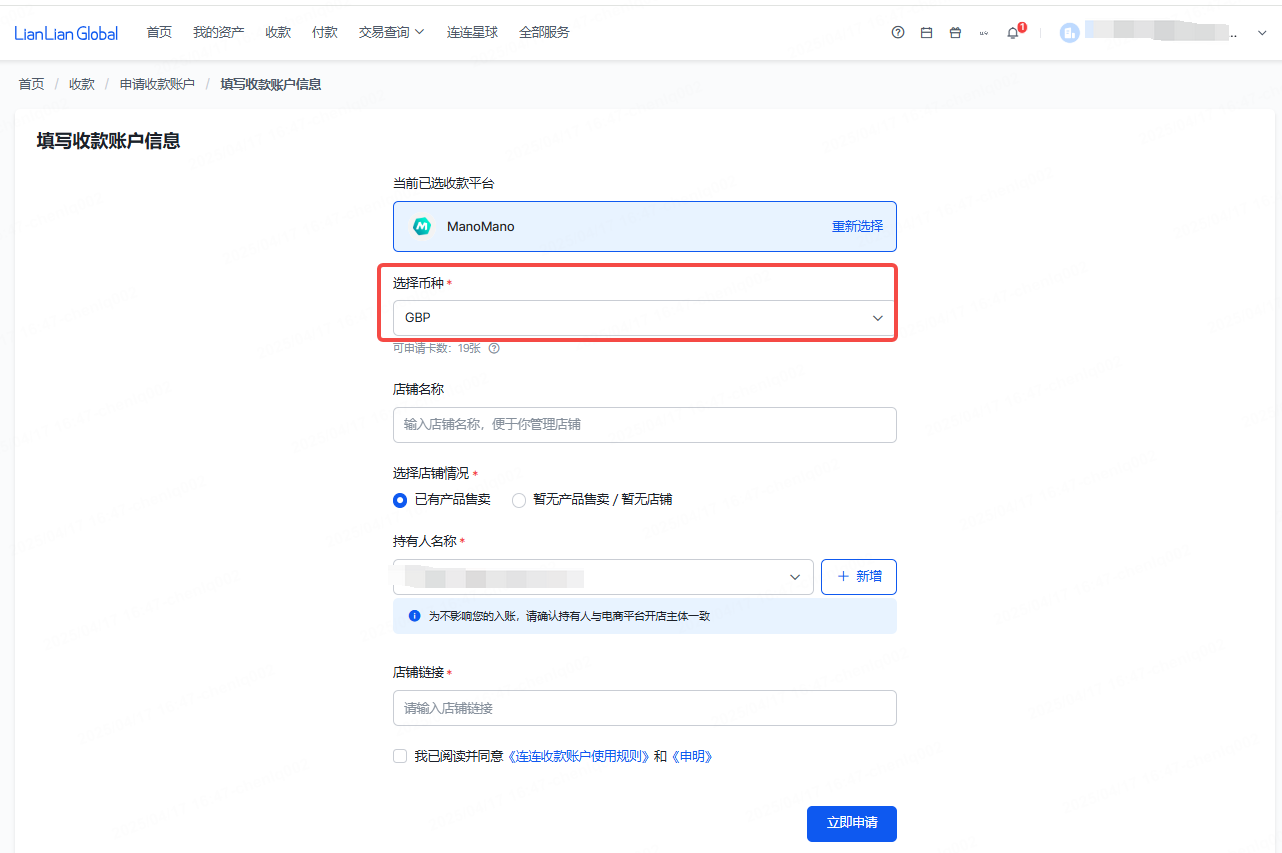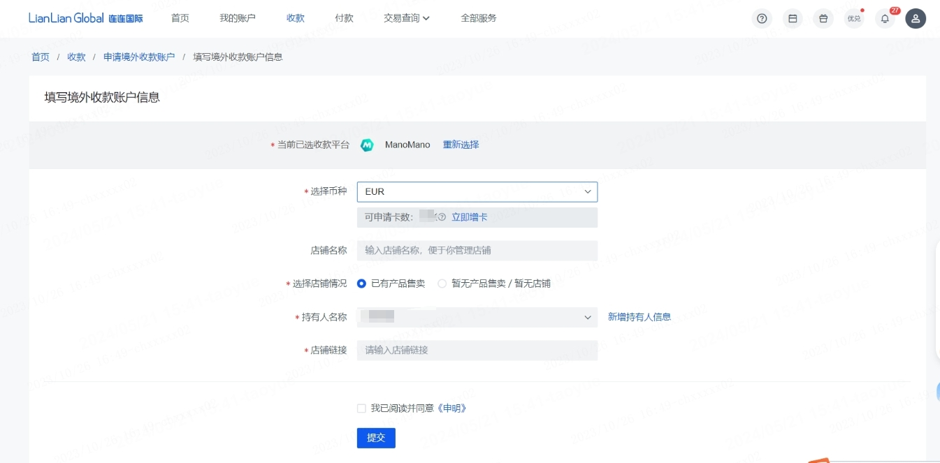 二、申请ManoMano连连收款账户