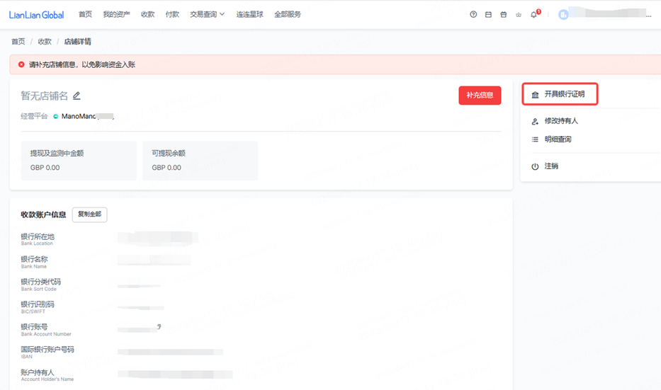ManoMano英国站:申请“ManoMano(GBP)”收款账户的银行证明