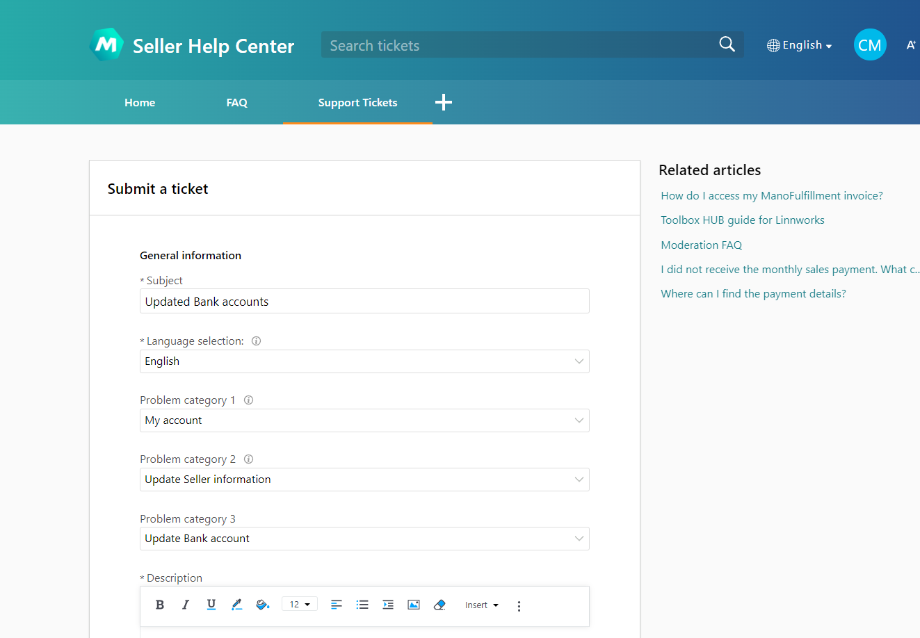 2. 老店铺换绑流程:卖家在平台seller help center提交ticket,路径 My account-Update Seller information-Update Bank account,ticket得到答复后,向平台客服提交新旧收款IBAN号(即国际银行账户号)和新收款账号对应的银行证明,需要保证新IBAN的seller name与店铺公司主体名称一致。
