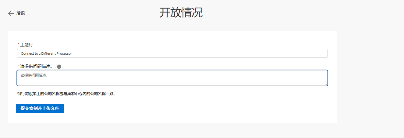 4.填写信息与材料:请在Case描述中填写“I need to change my payment processor”,并上传文件。同时,建议您准备以下文件并在该页面上传(具体所需换绑材料请以沃尔玛回复为准):