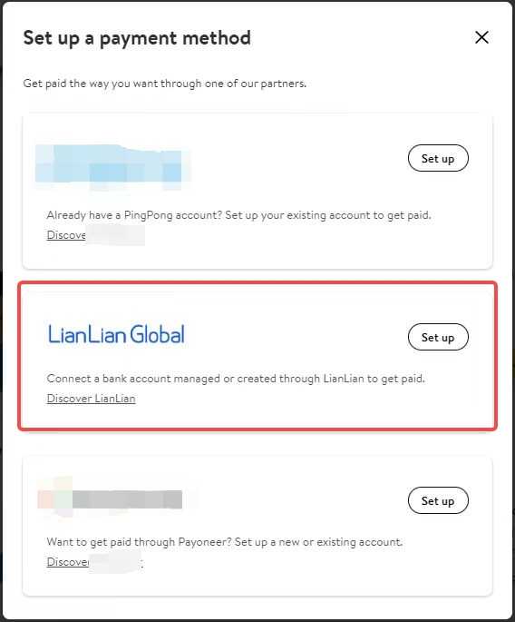 选择“LianLianGlobal”进行收款账户的填写及绑定。