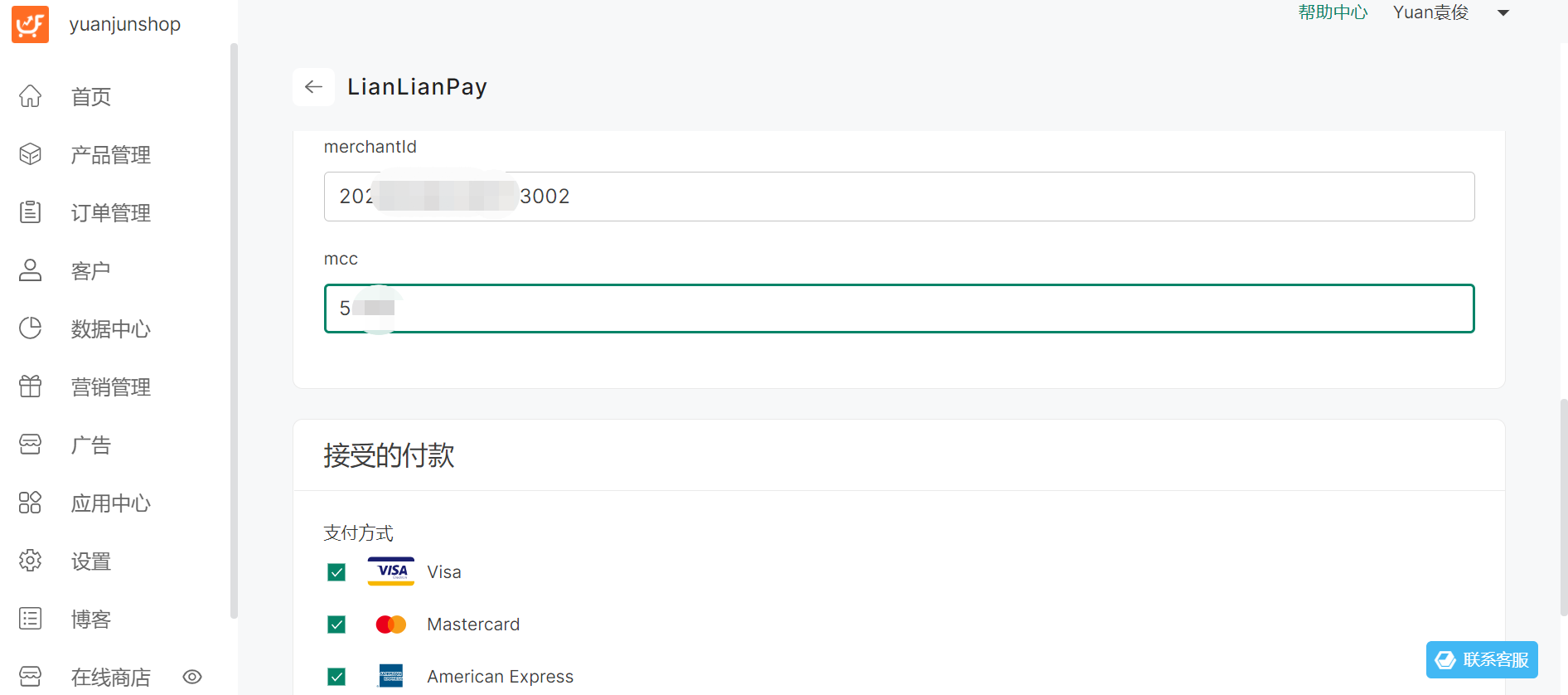 完成以上配置后即可正常使用连连信用卡收单