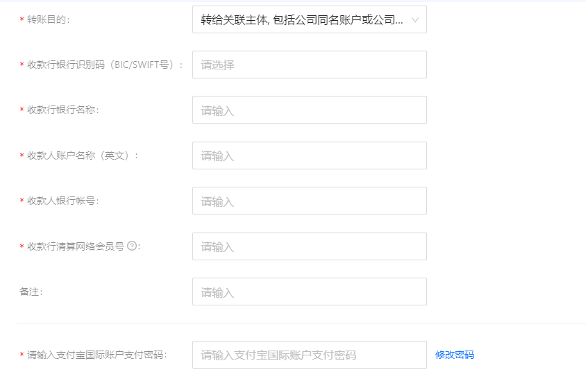 对应填写需要的信息,转账目的选择【转给关联主体包括公司同名账户或者公司的法人/董事 】,完成之后点击提交,即可开始收款