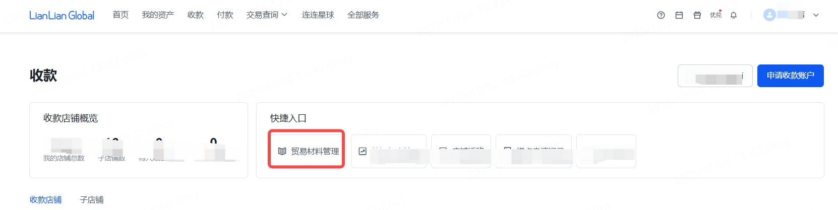 在连连官网-收款-贸易材料管理