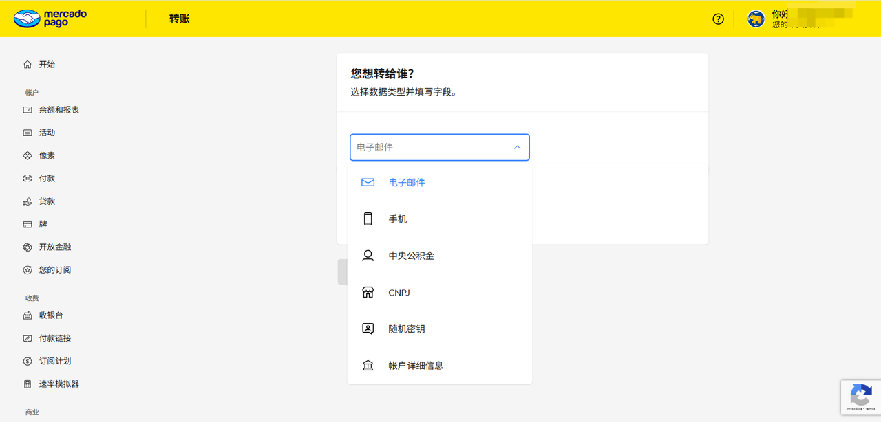 5、输入连连店铺详情显示的PIX key电子邮箱,并输入转账金额