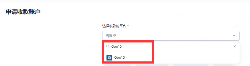 选择收款账户的平台:Qoo10。
