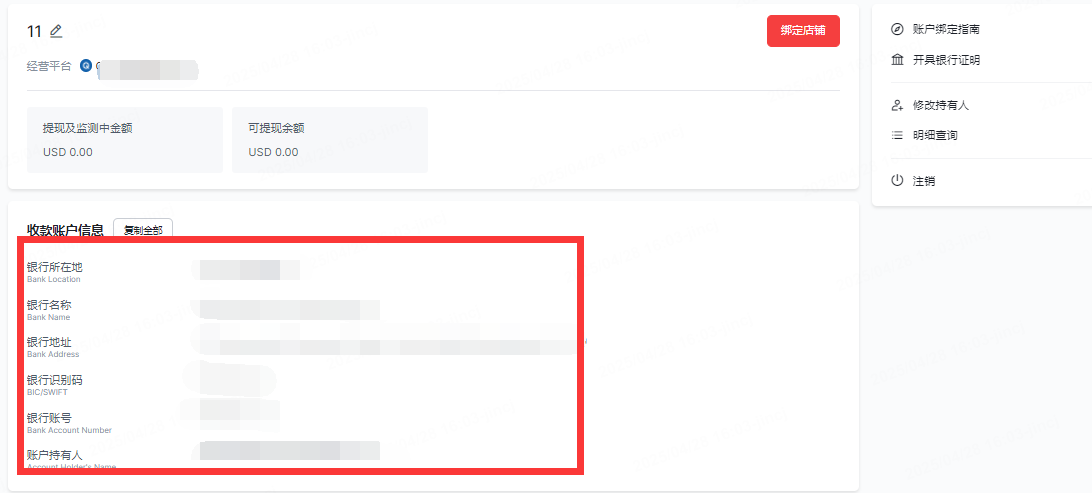 三、查看店铺和收款账户信息