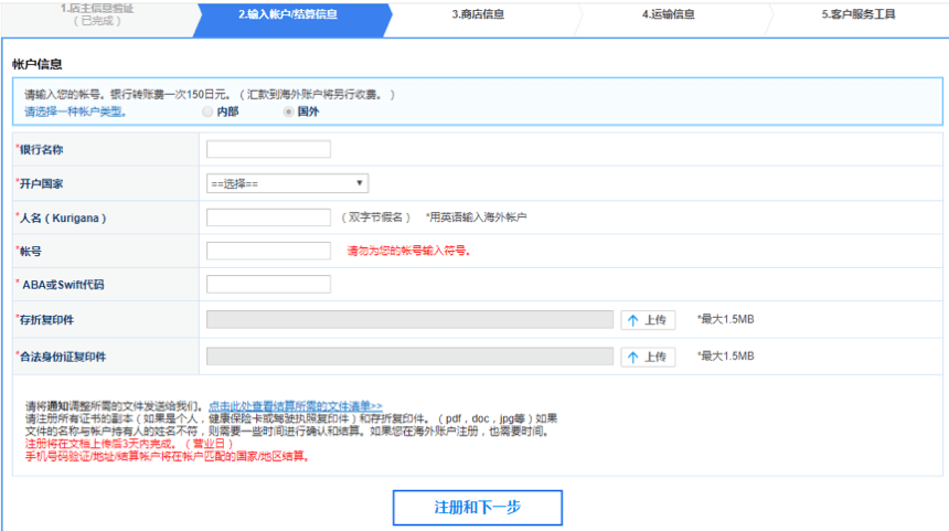 如您是企业用户,需要填写银行账户名称(英文大写):上传的营业执照中的公司大写英文名称。