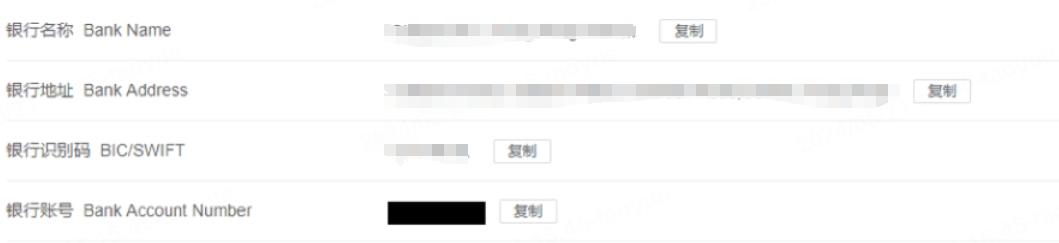 银行名:请复制账户信息中“银行名称”
