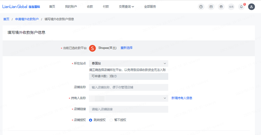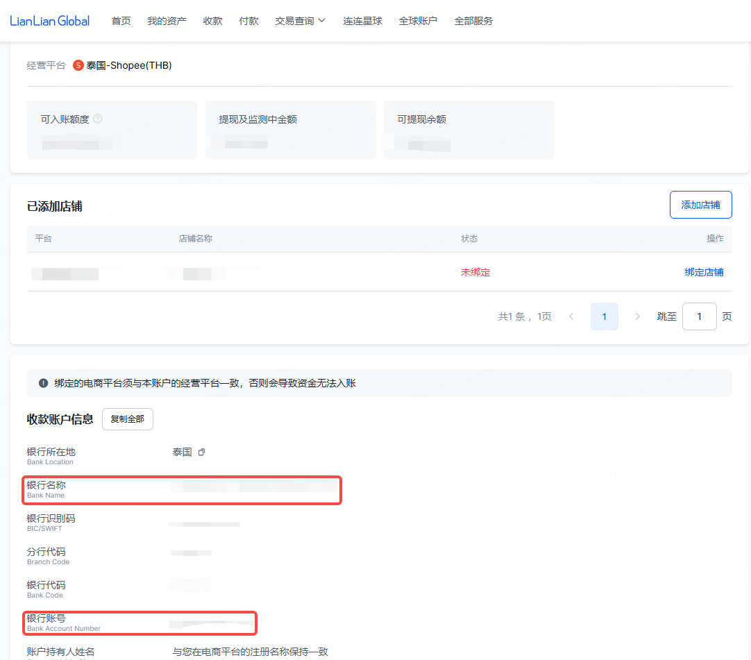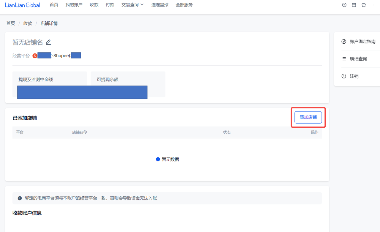 注:Shopee本土店建议在申请收款账户时就完成绑定店铺,否则影响资金入账