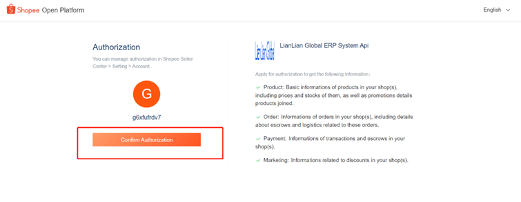 填写店铺链接后,选择【跳转授权】跳转至Shopee登录页面(此处输入Shopee后台的登录ID及密码)