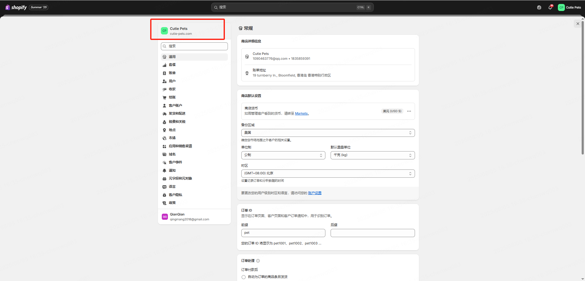 请登录Shopify后台,点击设置,将带域名信息的后台截图提交审核