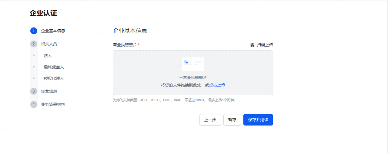 选择账户类型(企业/个人),按照步骤填写相应的信息并上传要求的证件照片