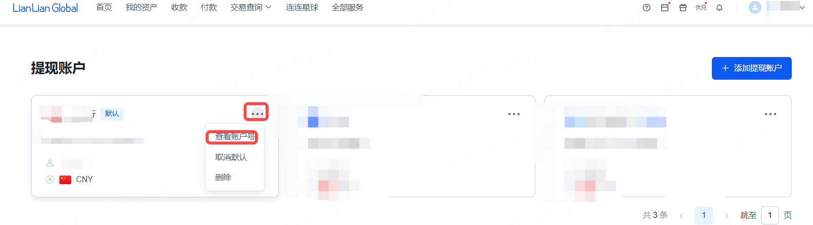 请问添加的提现银行账户在哪里查看?