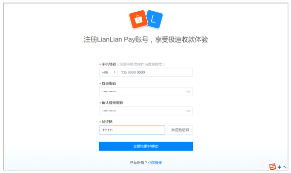 若已有连连账号,请登录连连账号完成绑定