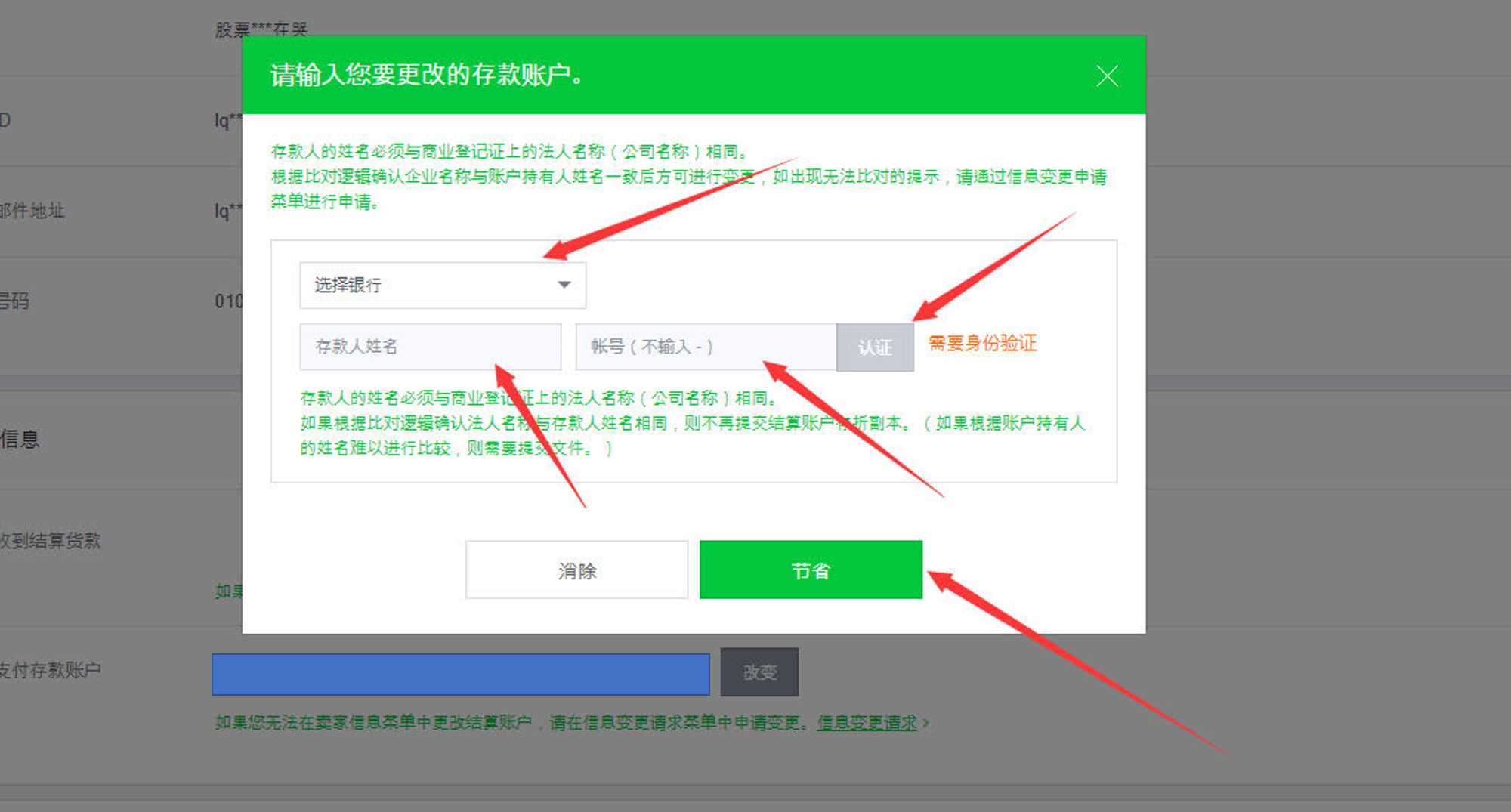 卖家信息 结算支付存款账户-改变