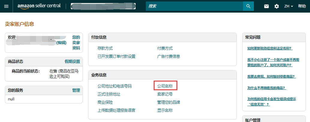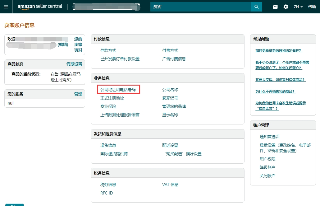 5Step1:亚马逊卖家中心-设置-账户信息,进入【卖家账户信息页面】