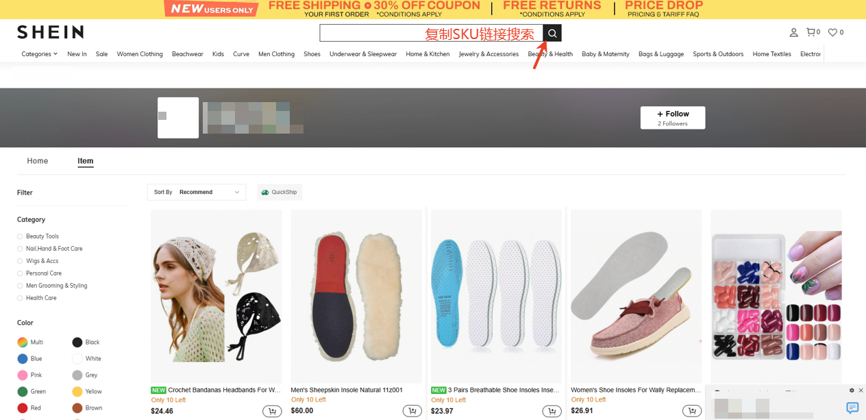 复制已上架的SKU链接,打开Shein官网粘贴SKU链接,点击搜索打开商品链接。