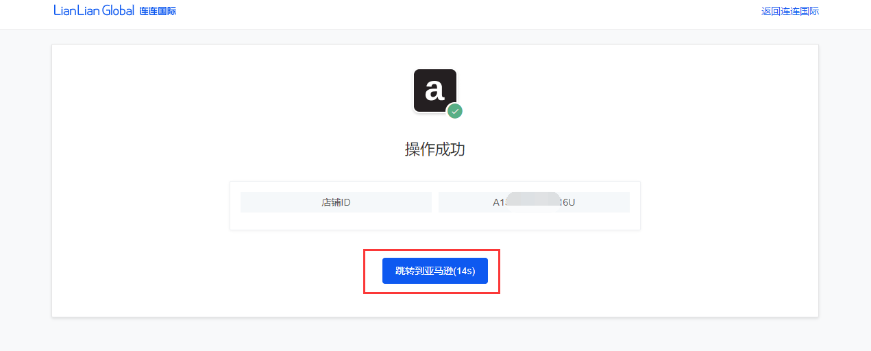 8、显示操作成功后,点击【跳转到亚马逊】,返回亚马逊商家后台