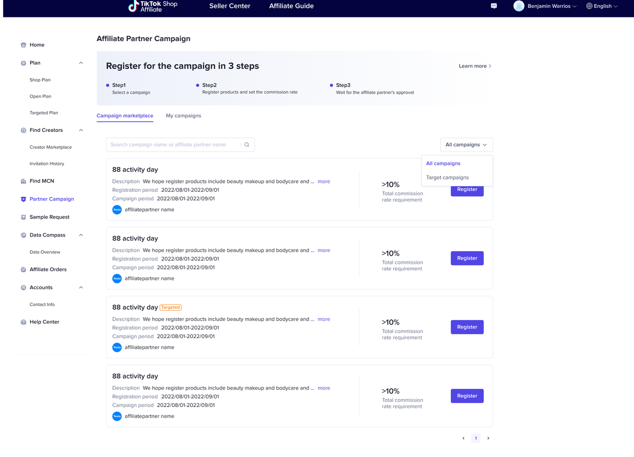 商家有分销诉求但线上达人建联成本高:商家直接邀请达人成本较高,规模化效率低。且商家有预算在TikTok Shop推广商品,因此希望可以通过有达人资源的联盟团长机构,在TikTok Shop上进行商品维度的分销