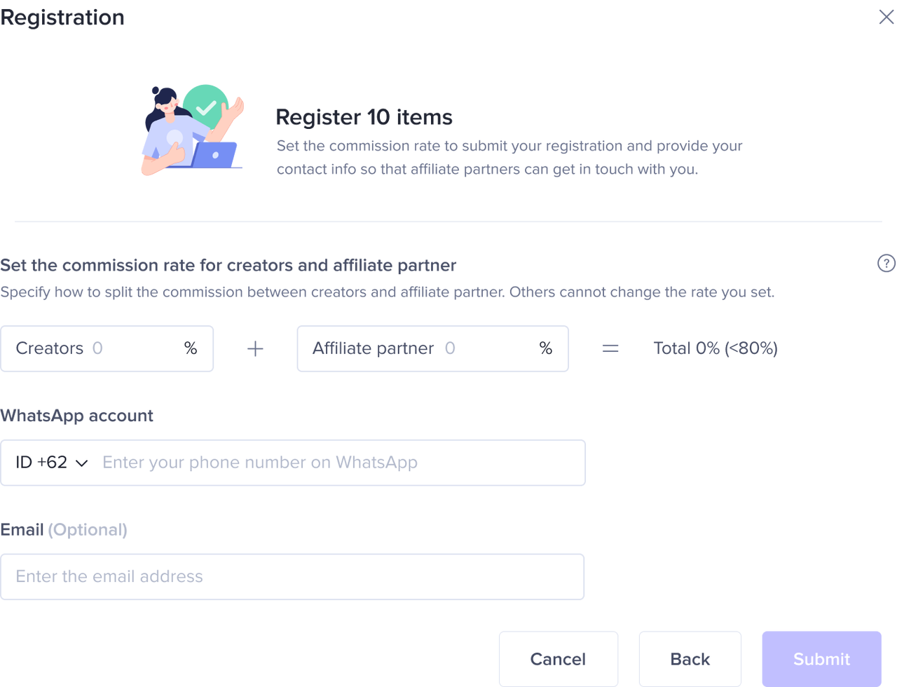商品报名-达人佣金及团长佣金设置页: