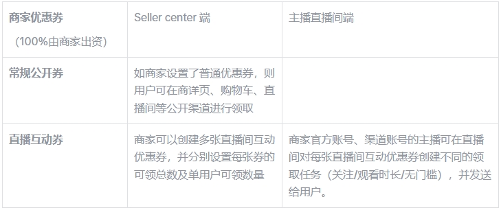 如商家设置了直播互动券,商家在后台设置直播间互动券后,商家绑定的TikTok官方账号及所有(至多四个)渠道账号的主播都有权利发放该券。并由主播在直播间设置不同的领券任务。