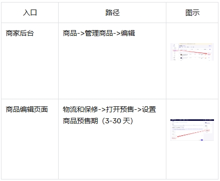 仅适用定邀商家: 有预售需求的卖家可以向对应的客户经理申请;平台收到申请需求后进行审核,对表现良好的商家开放预售