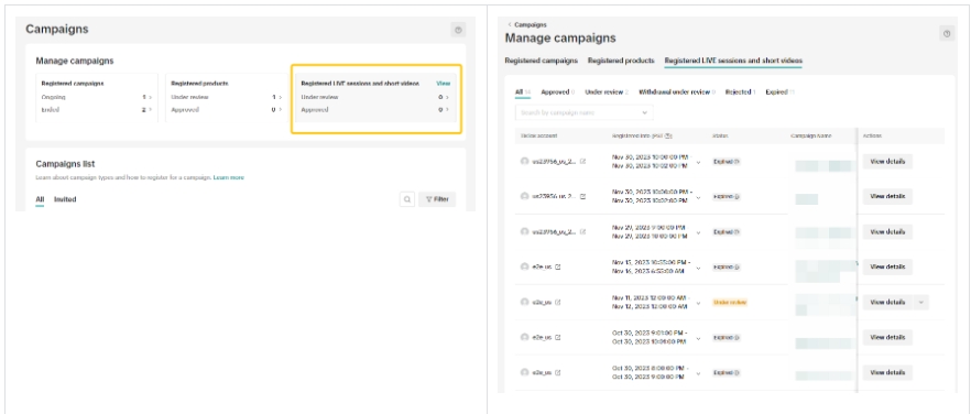 提交活动参与申请后,您可以访问直播/短视频活动页面,查看活动申请情况。