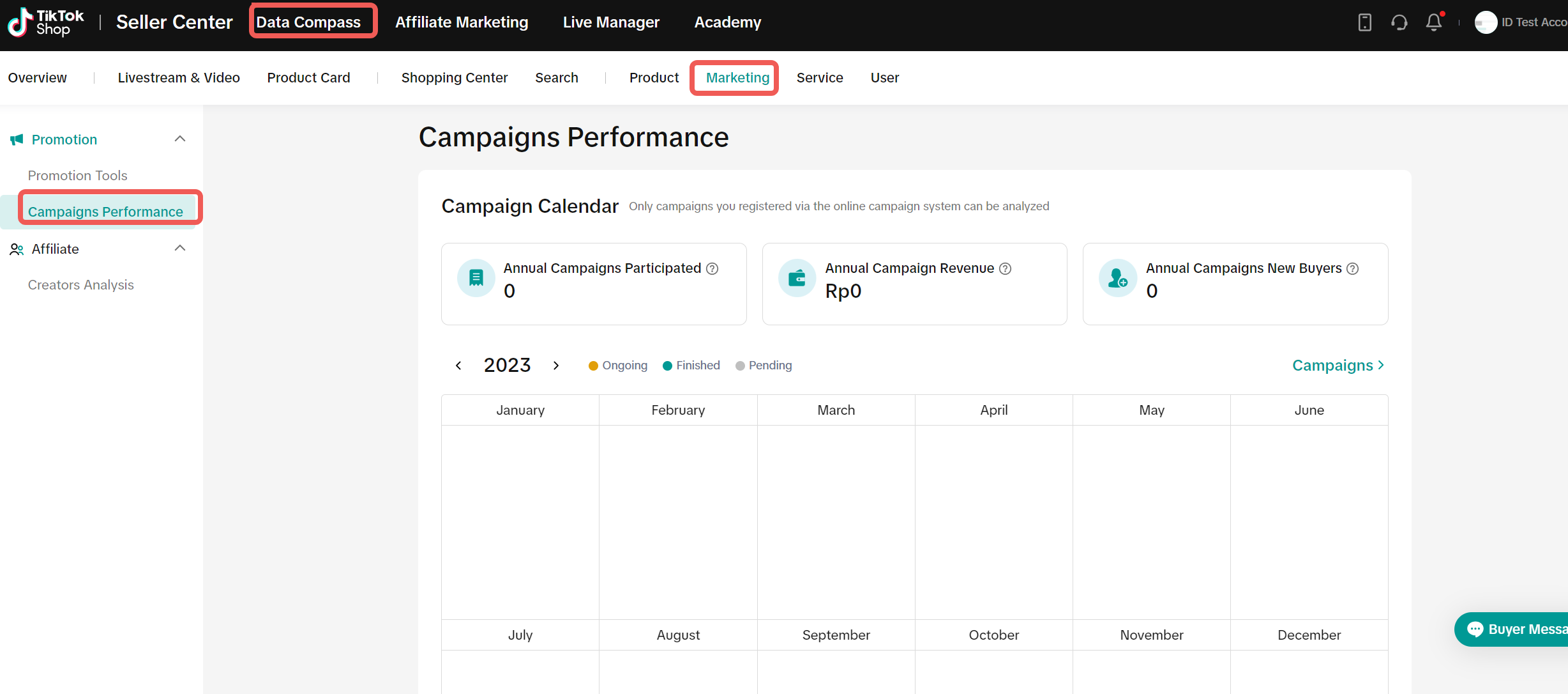 您可以在数据罗盘中查看参加的活动相关数据。点击营销标签页,并且选择“营销”标签页下的活动表现。