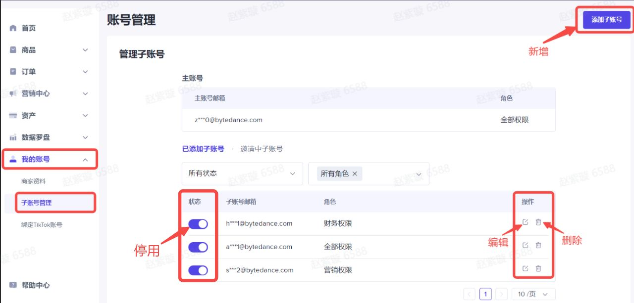 入口:我的账号-子账号管理