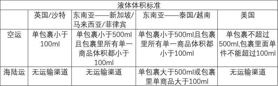 液体体积超标:单包裹大于500ml或包裹里单商品大于100ml