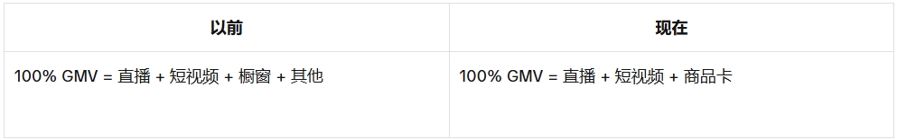 我们会根据内容载体类型计算GMV:直播、短视频和商品卡。