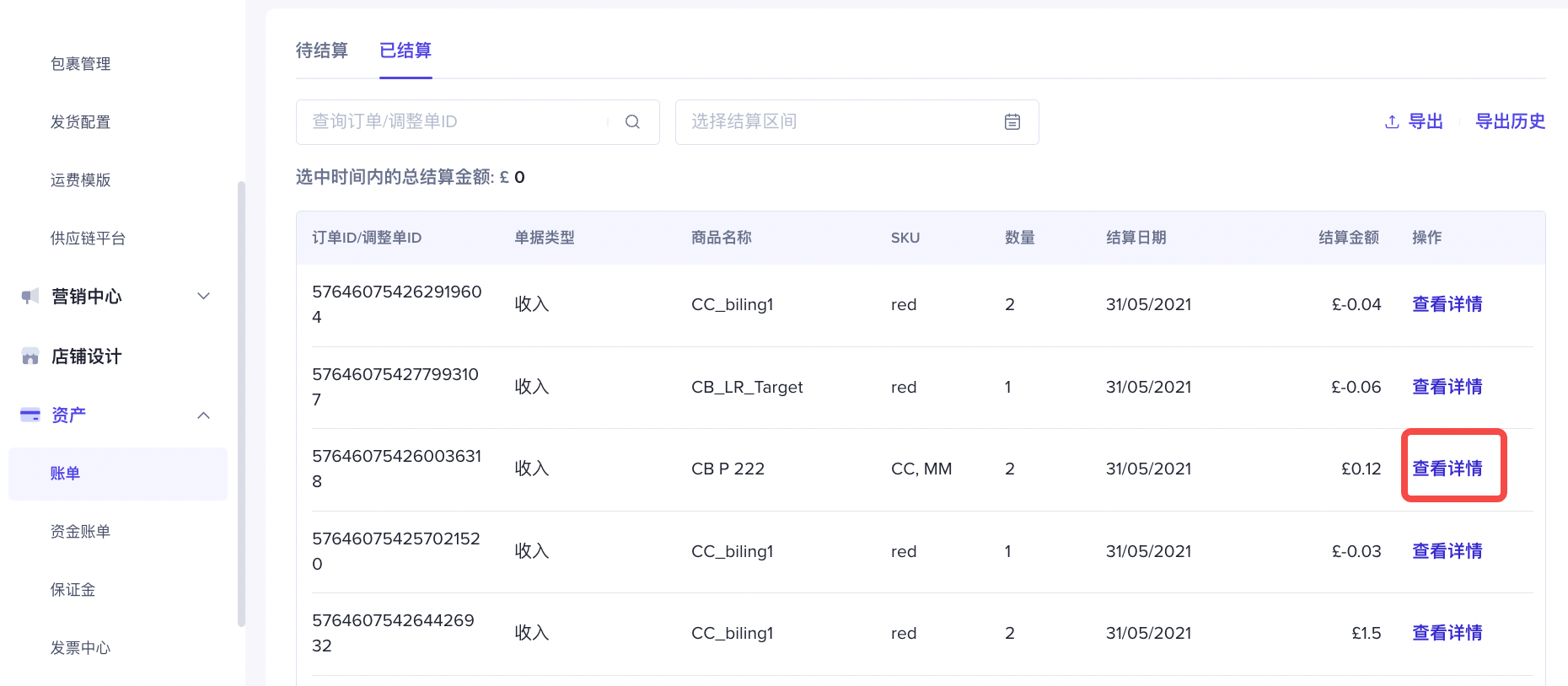 点击查看详情,可跳转至订单详情,查询单笔订单收支明细。
