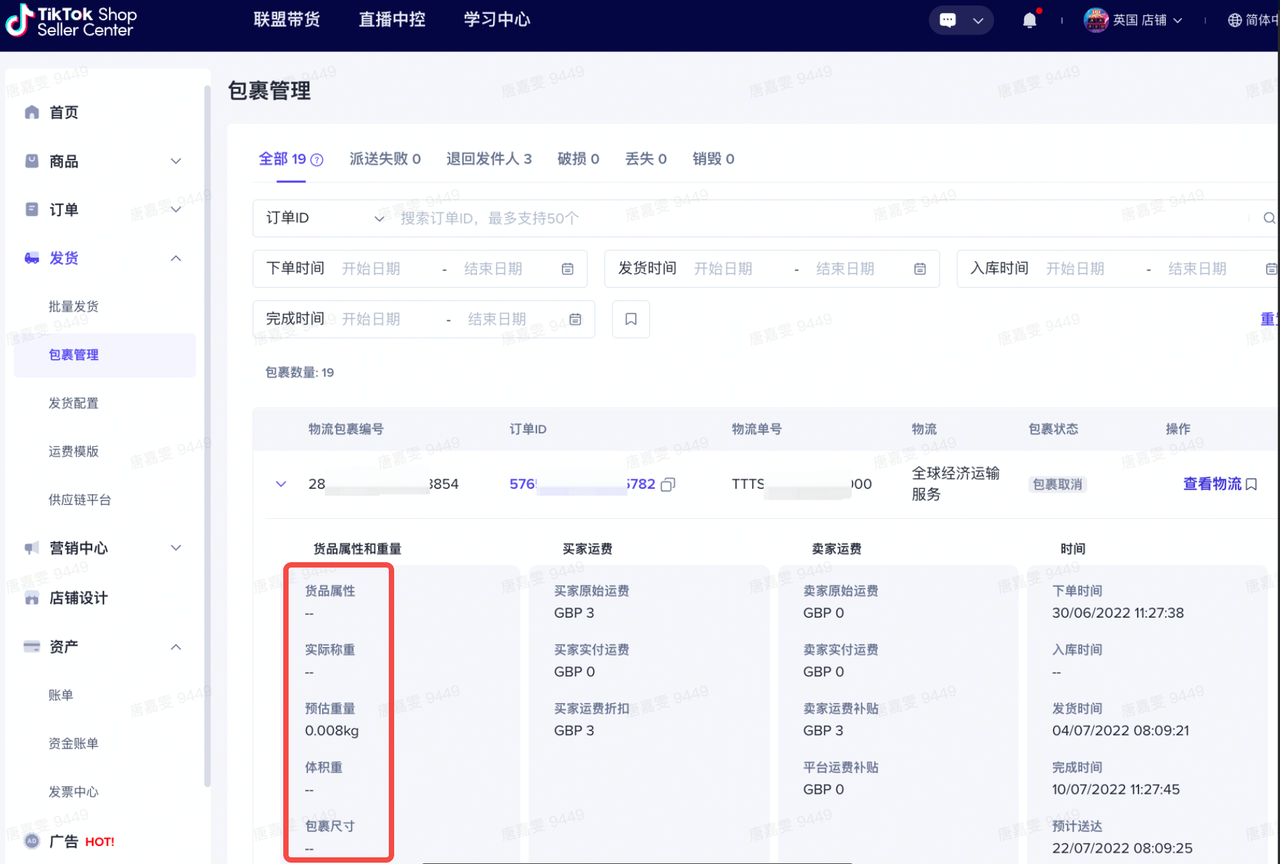 7月1日之后,平台上线的包裹中心功能,可查到每笔订单实际测量的重量