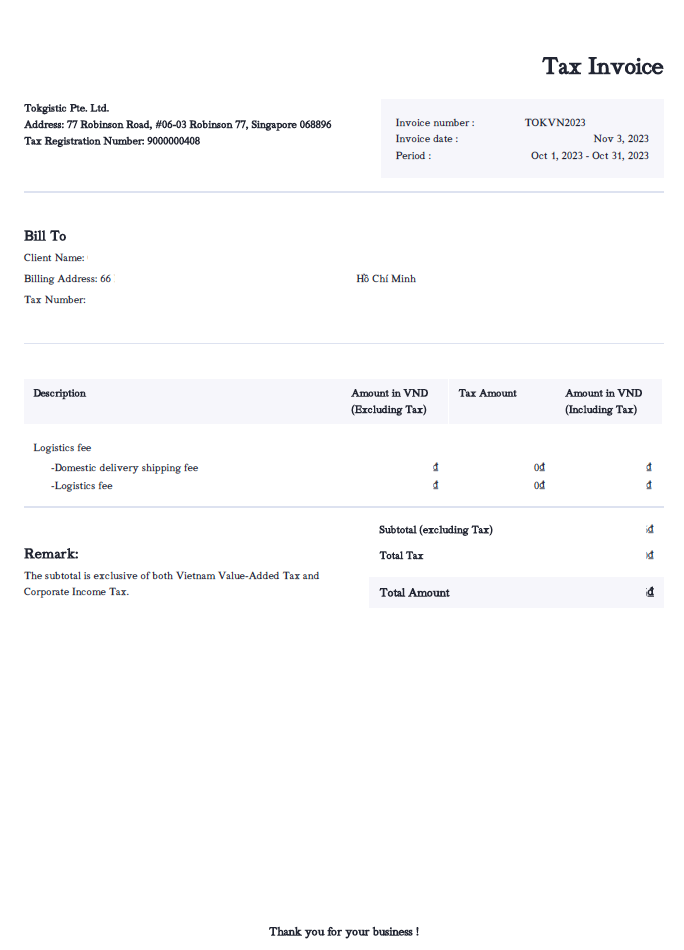 在物流税费金规则变更之后,您的物流费用ID将会被拆分为两个类别:国际物流费用ID和越南国内物流费用ID。不同的物流费用类型,会对应不同的税率。变更后,国际物流费用税率为0%,越南国内物流费用税率为5%的企业所得税(CIT)+5%的增值税(VAT)。