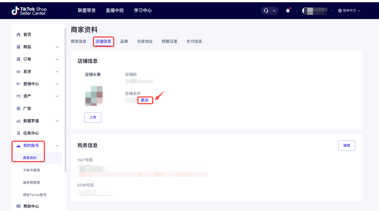 登陆TikTok Shop商家中心,进入“我的账号”中的“商家资料”界面,选择“店铺信息” ,点击“店铺名称”旁的“更改”按钮进行修改。