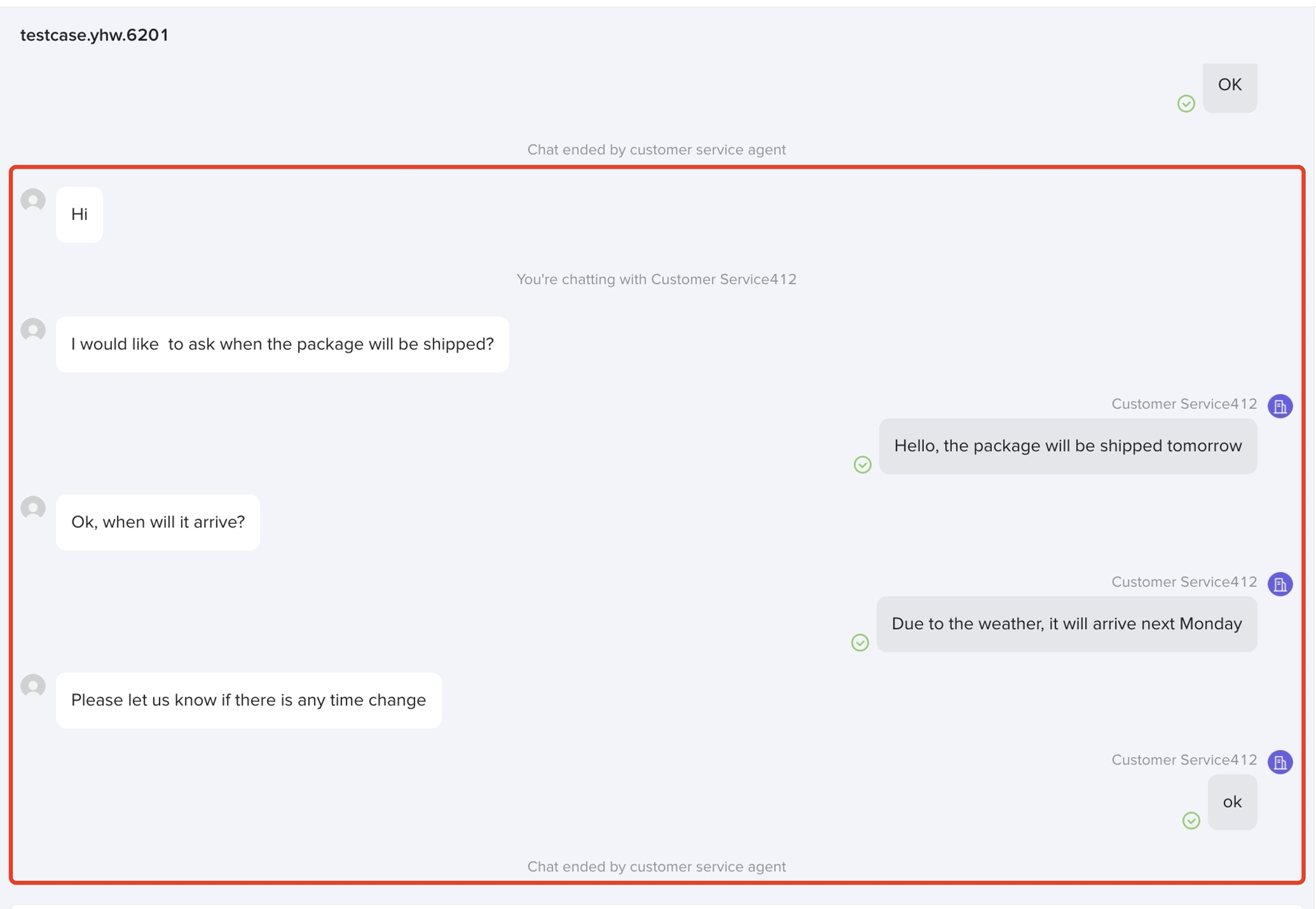 如下图所示(左侧为顾客,右侧为客服),红框中的内容为一次会话。
