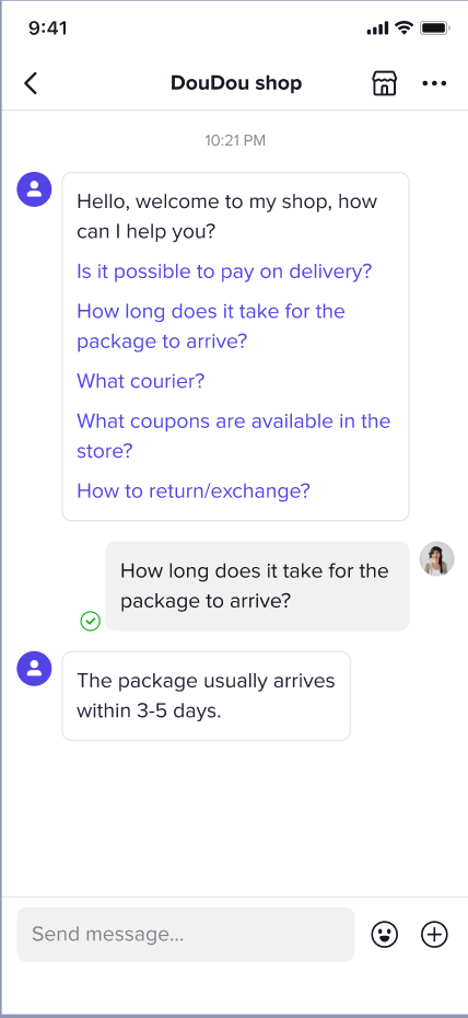 店铺管理者可设置常见问题知识库及快捷回复,将顾客经常咨询的问题以及标准回复提前设置好,便于后续应用。